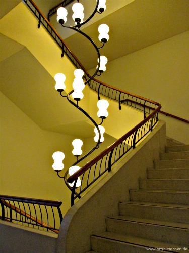 Das Treppenauge eignet sich besonders für Lampenskulpturen, die über mehrere Etagen gehen. Hier ein Beispiel aus Zürich.