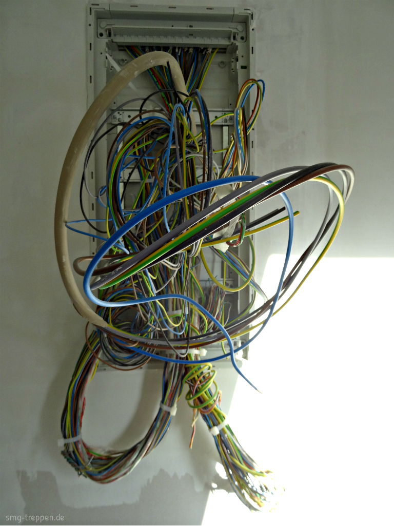 Kilometer an Kabel werden in jedem neuen Haus verlegt. In den letzten 20 Jahren haben sich die elektrischen Funktionen und Geräte im Haus mehr als verdoppelt. Elektrische Jalousien, Alarmanlagen, Lüftungsanlagen, Bewegungsmelder, Computertechnik und Kommunikation, alles braucht ein eigenes Kabel. Da heißt es den Überblick behalten und jedes Kabel an die richtige Stelle verlegen. Für uns, die von der Elektrik so gar keine Ahnung haben, sieht es wie ein riesiges Puzzle.