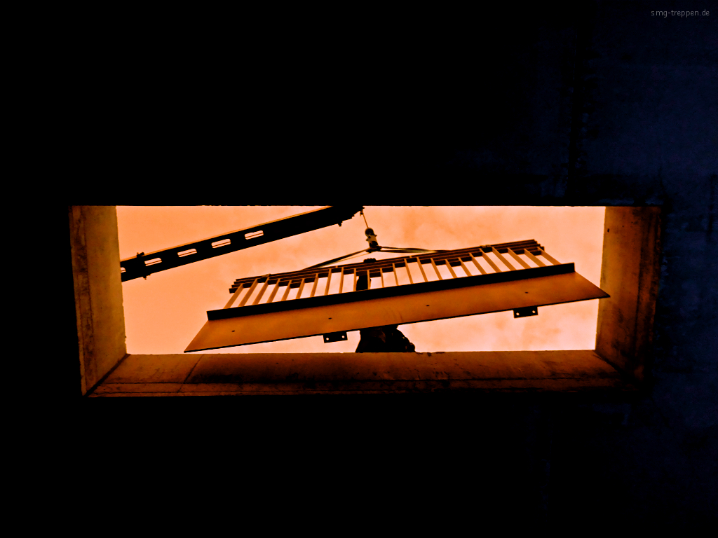 Auf jeden Fall sieht so der Geländeranflug noch spektakulärer aus. Der einzige der diesen Ausblick noch häufiger genießen kann ist Kran Mike – unser hoch geschätzter Kranpartner, der uns bisher und auch in Zukunft alle Treppenteile in die richtige Höhe bringt. Wo auch immer die neue Treppe stehen soll – wir kriegen das hin.