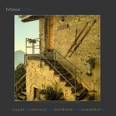 Das Kalenderbild Februar 2026 bringt uns hoch über den Comer See. 1256 Meter hoch liegt die Alpe Piazza, direkt am Nordufer des Sees. Der Weg hinauf, über die unzähligen Serpentinen, lohnt sich wirklich. Das Panorama über dem See, das Tal mit den umgebenden Bergen raubt einem Flachländer, wie mir, fast den Atem. Es braucht schon Zeit, bis man die vielen Details erfasst und gespeichert sind. Wir hatten zudem das Glück, dass das Wetter grandios war. Sonnenschein, angenehme Temperaturen, knapp über 20 Grad, und klarer Himmel boten einen Ausblick, der einzigartig ist.