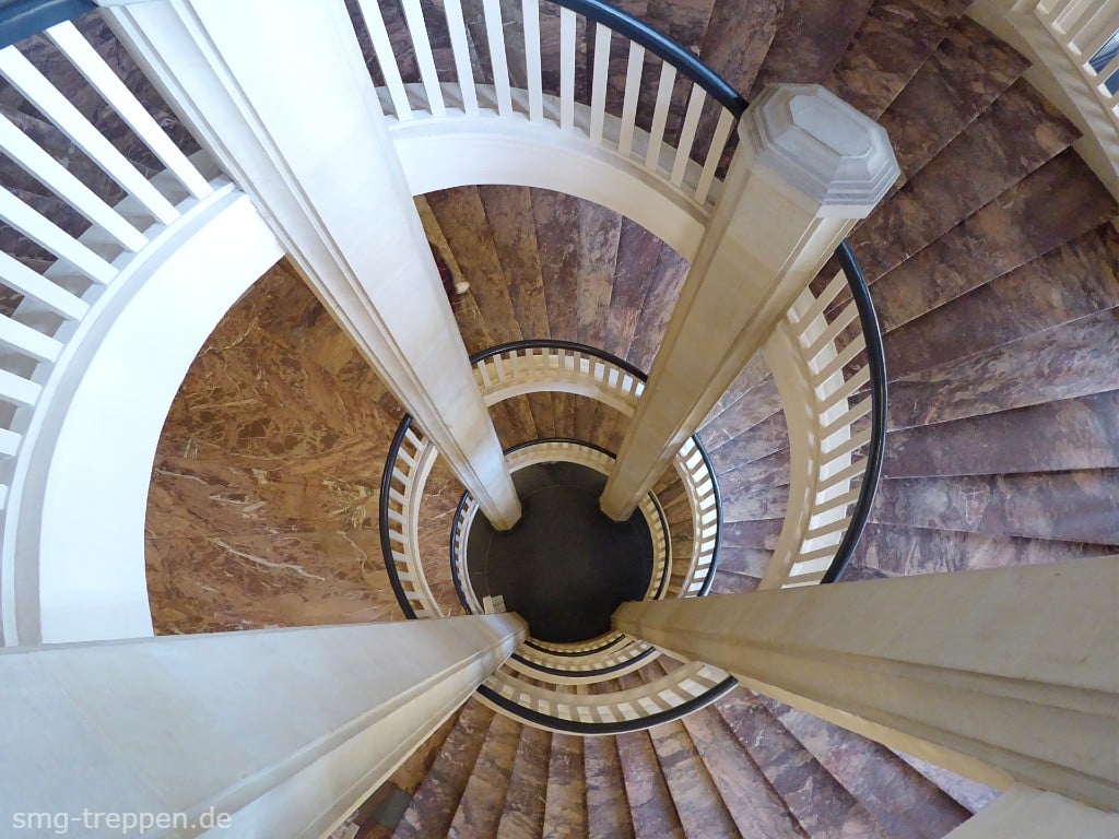 Auch die Handlaufhalter der Wandhandläufe in Bronze-Guss stammen aus der Zeit. Auch wenn es sicherlich ein Detail ist, was dem Tagesbesucher vermutlich, aufgrund der vielfältigen Pracht an Stück, Mustern und Bildern, nicht in Erinnerung bleiben wird, ist es doch ein sehr schönes Detail, was zur Gesamtkomposition des Schlosses beiträgt. Es ist nicht ganz klar, ob die Figur ein Mitglied der Eigentümerfamilie oder doch einen Bediensteten darstellt. Für die Betrachtung als Bediensteter spricht die schiere Menge an Dienstpersonal, die für den reibungslosen Tagesablauf eines Schlosses notwendig waren.