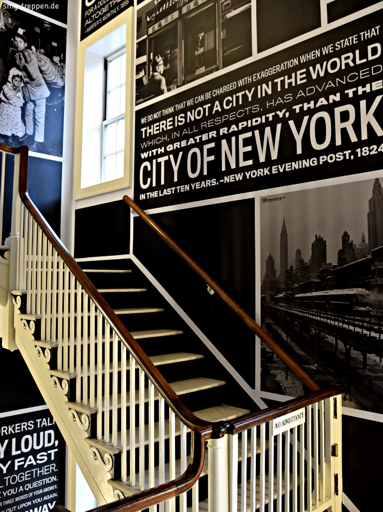 Die eigentliche Dienstboten und Versorgungstreppe im Museum of NYC ist super schön hergerichtet. Bilder der Stadt und geschichtsschreibender Ereignisse dekorieren die Wände vom EG bis zum Dachgeschoß. Eigentlich eine Ausstellung für sich. Super.