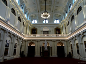 Zufälligerweise waren wir gestern mal wieder zur richtigen Zeit am richtigen Ort. Als wir 15.10 Uhr die Stufen zum Parlamentsgebäude nach oben stiegen, um zu schauen, ob man als Tourist dort einen Blick hineinwerfen kann, waren die Vorbereitungen für eine Führung in vollem Gange. Klare, kurze Entscheidung wir machen mit und nach Sicherheitscheck und elektronischer Registrierung standen wir in der Eingangshalle des Parlamentes von Victoria.